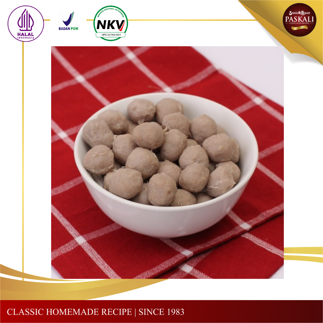 Bakso sapi mini Paskali hampir serupa dengan bakso sapi halus, yang membedakannya hanyalah ukurannya yang lebih kecil.