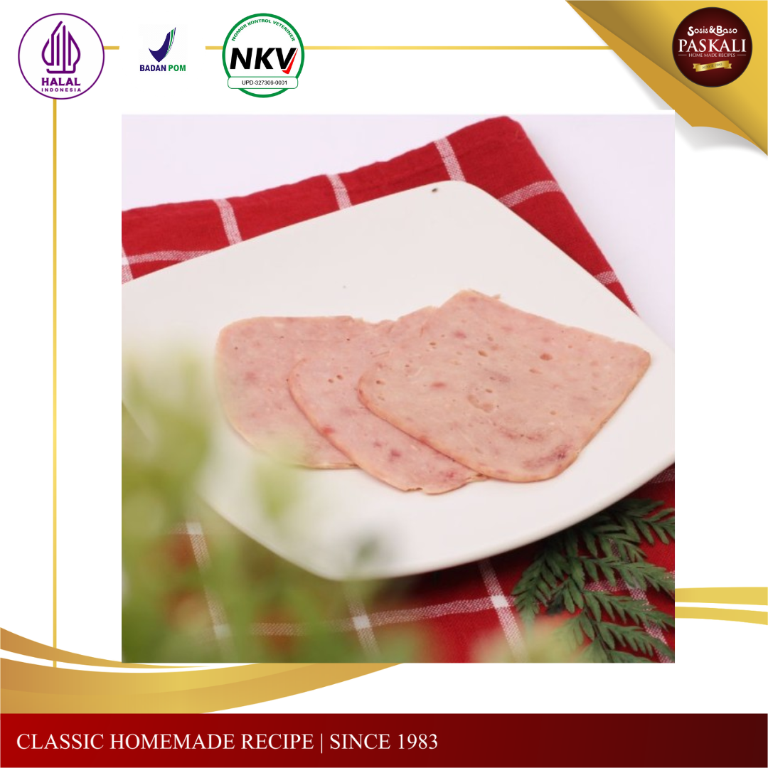 Chicken ham dibuat dengan cara direbus terlebih dahulu disertai dengan bumbu klasik Paskali.